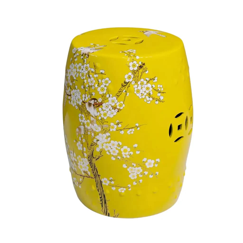 DRUM STOOL YELLOW CHERRY BLOSSOM  Dimensions: L32 x W32 x H43cm Colour: Cherry Blossom YellowMaterial: Porcelain  Note: Parts of the product may be hand-painted/hand-crafted; therefore, imperfections might be present which adds to its character. The product might differ slightly in terms of colour and dimensions from the product in the image.